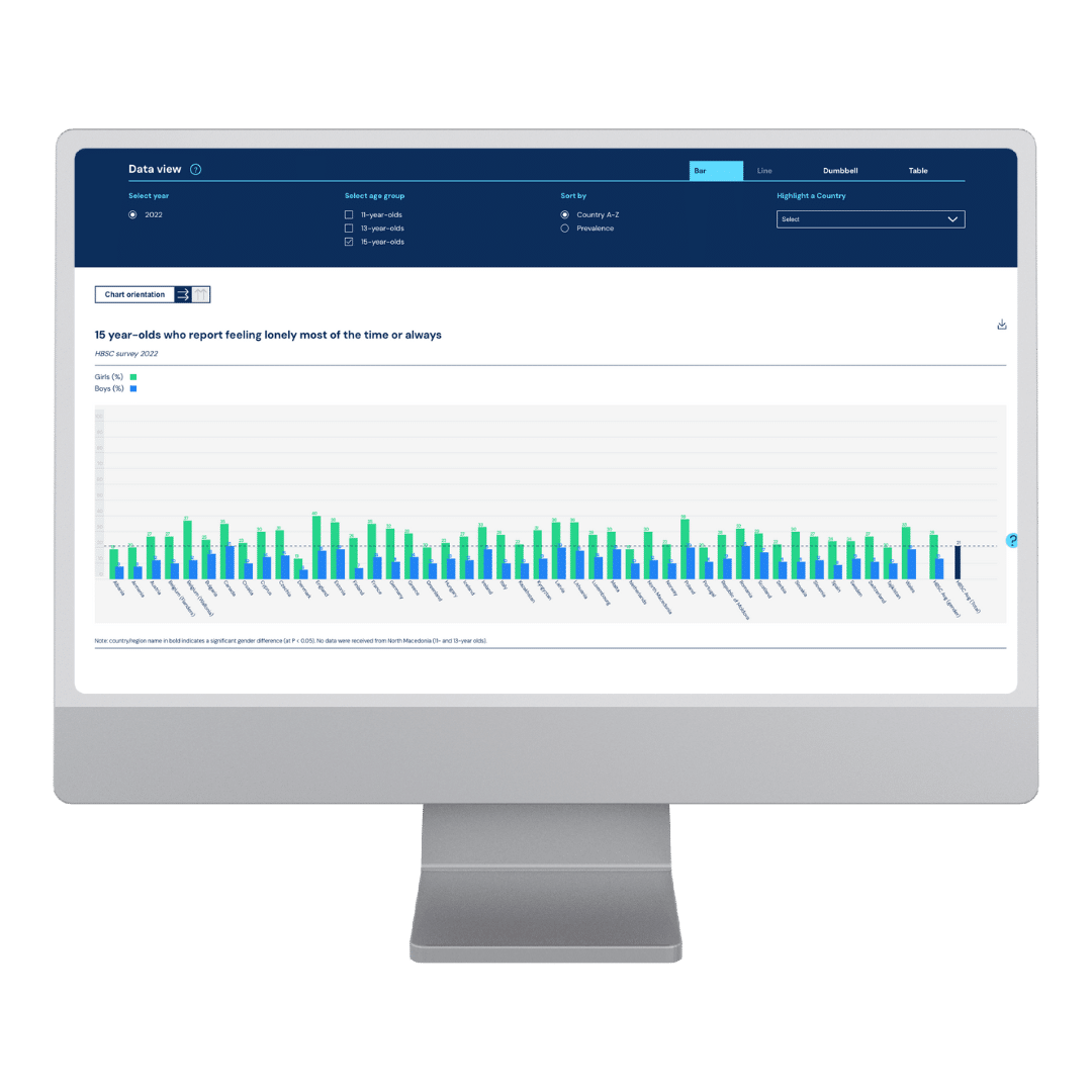 Dive into HBSC study’s data on adolescent health and well-being. Explore, compare and share cross-national results from the latest international survey in 2022, alongside comparable figures from the HBSC surveys in 2014 and 2018.